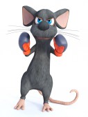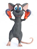 3D renderowania ładny uśmiech myszy kreskówki przebrany za super bohatera z niebieską maską twarzy i peleryna. Białe tło.