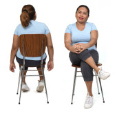 widok z boku kobieta siedzi na krześle wygląd strony na białym tle