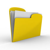 żółty komputer folder z zamkiem błyskawicznym. na białym tle obraz 3d