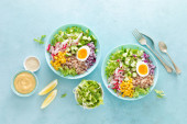 Zdjęcie "Wegetariańska quinoa i brokuły ciepła sałatka z pieczonym dyni lub dyni, zielony groszek i świeża czerwona cebula, widok z góry na dół" może być wykorzystywane do celów osobistych i komercyjnych zgodnie z warunkami zakupionej licencji Royalty-free. Obraz jest dostępny do pobrania w jakości wysokiej rozdzielczości do 5760x3840.