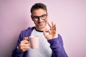 Zdjęcie "Młody Hiszpan pijący włoską kawę z uśmiechem na twarzy. wykazujące zęby. " może być wykorzystywane do celów osobistych i komercyjnych zgodnie z warunkami zakupionej licencji Royalty-free. Obraz jest dostępny do pobrania w jakości wysokiej rozdzielczości do 5760x3840.