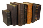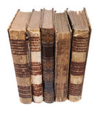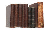 rząd starych książek na białym tle. wiele książek Pokaż wiele