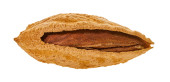 skorupa migdałów ze ścieżką wycinania na białym, izolowanym tle