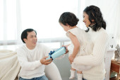 Zdjęcie "żona i syn patrząc na szczęśliwy podekscytowany mężczyzna w średnim wieku otwierając kartonowe pudełko z butami do biegania tak bardzo chciał" może być wykorzystywane do celów osobistych i komercyjnych zgodnie z warunkami zakupionej licencji Royalty-free. Obraz jest dostępny do pobrania w jakości wysokiej rozdzielczości do 5760x3840.