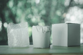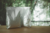 Opakowanie do ziaren kawy, herbaty i przypraw, przekąsek i jagód na drewnianym stole