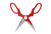 Nożyce zakrwawione i kropla krwi na białym tle ze ścieżką wycinania
