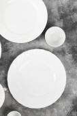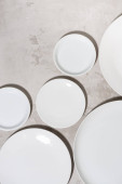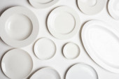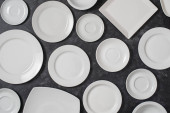 zestaw czystych białych płyt na białym tle, widok z góry