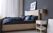 Komfortowa sypialnia z obrazem na dekoracyjnej ścianie. Projekt wnętrza