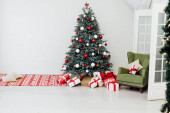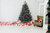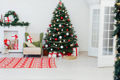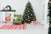 Choinka z kominkiem wnętrz domu nowy rok wystrój