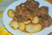 tradycyjne rosyjskie potrawy kotlet z ziemniakami przyprawione warzywami i sosem