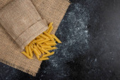 Torba papierowa z makaronem i pizzą na ciemnym tle
