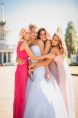 Seksowny czarujący dziewczyny chodzenia po ulicy trzymając się za ręce