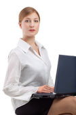 biznes kobieta pracuje na jej laptopie