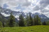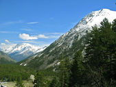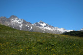 Niebiański alpejski krajobraz w Engadine w Szwajcarii 27.5.2020