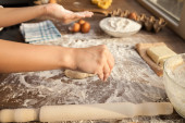 Zdjęcie "Piękny smily przystojny kobieta jest przygotowanie smaczne świeże surowe włoski makaron w jej kuchni w domu" może być wykorzystywane do celów osobistych i komercyjnych zgodnie z warunkami zakupionej licencji Royalty-free. Obraz jest dostępny do pobrania w jakości wysokiej rozdzielczości do 5760x3840.