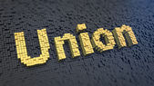 Wybory unijne i amerykańskie, symbolizowane jako urna do głosowania z flagą amerykańską w tle i frazą Związek na karcie do głosowania, aby pokazać, że Unia jest związana z wyborami, ilustracja 3D