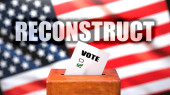 Odporność i głosowanie w USA, na zdjęciu jako urna do głosowania z flagą amerykańską w tle oraz wyrażenie Odporność symbolizujące, że Odporność jest związana z wyborami, ilustracja 3D