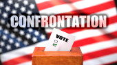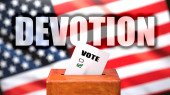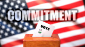Obowiązek i głosowanie w USA, przedstawiony jako urna do głosowania z flagą amerykańską w tle oraz wyrażenie Obowiązek symbolizowania, że obowiązek jest związany z wyborami, ilustracja 3D
