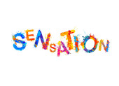 Sensacja i polityka w USA, symbolizowane jako osoba stojąca przed frazą Sensation Sensation jest związana z polityką i wyborem każdej osoby, ilustracja 3D