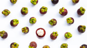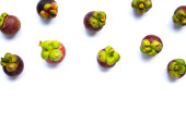 Mangosteen na białym tle. Widok z góry