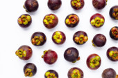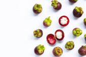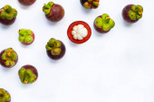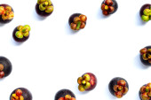 Mangosteen na białym tle. Widok z góry
