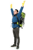 Zdjęcie "mężczyzna turysta z plecak wychował jego ramię" może być wykorzystywane do celów osobistych i komercyjnych zgodnie z warunkami zakupionej licencji Royalty-free. Obraz jest dostępny do pobrania w jakości wysokiej rozdzielczości do 5760x3840.