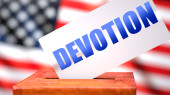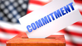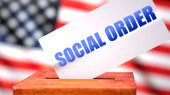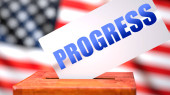Większe dobro i wybory amerykańskie, symbolizowane jako urna do głosowania z flagą amerykańską i frazą Większe dobro na karcie do głosowania, aby pokazać, że większe dobro jest związane z wyborami, ilustracja 3D