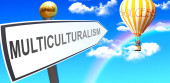 Wielokulturowość i wybory amerykańskie, symbolizowane jako urna do głosowania z flagą amerykańską i frazą wielokulturowość na karcie do głosowania, aby pokazać, że jest ona związana z wyborami, ilustracja 3D