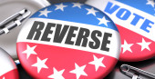Odwrotne i amerykańskie wybory, symbolizowane jako urna do głosowania z flagą amerykańską w tle i frazą Odwrócenie na karcie do głosowania, aby pokazać, że Odwrócenie jest związane z wyborami, ilustracja 3D