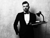 Zdjęcie "Portret młodego, przystojnego brodatego biznesmena z widokiem na miasto w czerni i bieli" może być wykorzystywane do celów osobistych i komercyjnych zgodnie z warunkami zakupionej licencji Royalty-free. Obraz jest dostępny do pobrania w jakości wysokiej rozdzielczości do 5760x3840.