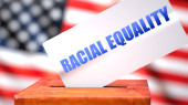 Niebieskie życia i wybory amerykańskie, symbolizowane jako urna do głosowania z flagą amerykańską i frazą "Niebieskie życia" mają znaczenie na karcie do głosowania, aby pokazać, że jest to związane z wyborami, ilustracja 3D