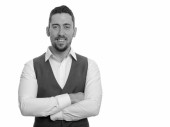 Zdjęcie "Portret młodego, przystojnego, brodatego biznesmena w garniturze z widokiem na miasto w czerni i bieli" może być wykorzystywane do celów osobistych i komercyjnych zgodnie z warunkami zakupionej licencji Royalty-free. Obraz jest dostępny do pobrania w jakości wysokiej rozdzielczości do 5760x3840.