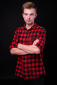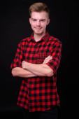 Studio zdjęcie młodego przystojnego hipstera w okularach odizolowanych na białym tle w czerni i bieli