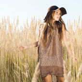 dziewczyna, chodzenie w polu