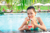 Zdjęcie "Piękna azjatycka kobieta podróżnik nosić kapelusz trzymać szklankę soku pomarańczowego relaks w basenie." może być wykorzystywane do celów osobistych i komercyjnych zgodnie z warunkami zakupionej licencji Royalty-free. Obraz jest dostępny do pobrania w jakości wysokiej rozdzielczości do 5760x3840.
