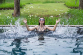 Zdjęcie "Piękne azjatyckie kobiety podróżnik cieszyć robienie zdjęć w basenie ze smartfonem." może być wykorzystywane do celów osobistych i komercyjnych zgodnie z warunkami zakupionej licencji Royalty-free. Obraz jest dostępny do pobrania w jakości wysokiej rozdzielczości do 5760x3840.