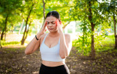 piękne Azji kobieta podróżnik oczyścić twarz z ręcznik na zewnątrz.