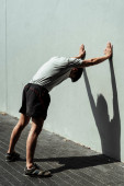 Widok z góry - Piękna zdrowa kobieta rozgrzewa się i rozciąga przed bieganiem.