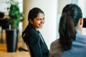 Dwie azjatyckie biznesmenki pracujące razem w sali konferencyjnej.