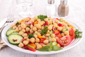 sałatka warzywna z fasolą, pomidorem, ciecierzycą i ogórkiem