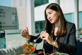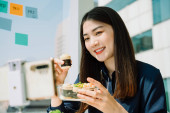Zdjęcie "Azji biznes kobieta noszenie okulary korzystać lunch box zestaw w biurze." może być wykorzystywane do celów osobistych i komercyjnych zgodnie z warunkami zakupionej licencji Royalty-free. Obraz jest dostępny do pobrania w jakości wysokiej rozdzielczości do 5760x3840.