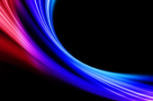 Kolorowe neonowe kształty na ciemnym abstrakcyjnym tle. Puste tło sceny, rozmyte neonowe światło ultrafioletowe, bokeh.