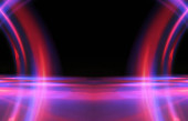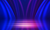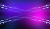 Ciemne abstrakcyjne tło. Neonowy wielobarwny blask. Nocne przyjęcie, pokaz laserowy. Puste tło sceny koncertowej, odbicie światła reflektorów.
