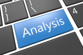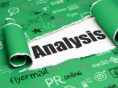 pojęcie reklamy: głowa z przekładni i analizy na tle klawiatury komputera