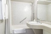 Zdjęcie "Mała wanna i prysznic w łazience w hotelu" może być wykorzystywane do celów osobistych i komercyjnych zgodnie z warunkami zakupionej licencji Royalty-free. Obraz jest dostępny do pobrania w jakości wysokiej rozdzielczości do 5760x3840.