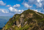 Góra Marmaros Pip Ivan, Karpaty, Ukraina, niedaleko granicy z Rumunią. Letni spokojny krajobraz.