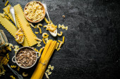 Różnorodność na surowej makaronu na czarnym tle
