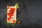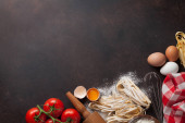 Zdjęcie "Surowy makaron z surowymi jajkami i warzywami na czarno. Przestrzeń kopiowania" może być wykorzystywane do celów osobistych i komercyjnych zgodnie z warunkami zakupionej licencji Royalty-free. Obraz jest dostępny do pobrania w jakości wysokiej rozdzielczości do 5760x3840.