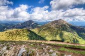 Zdjęcie "Letni grzbiet górski, kwiaty rododendronu i karłowate alpejskie krzewy. Góra Marmaros Pip Ivan, Karpaty, Ukraina." może być wykorzystywane do celów osobistych i komercyjnych zgodnie z warunkami zakupionej licencji Royalty-free. Obraz jest dostępny do pobrania w jakości wysokiej rozdzielczości do 5760x3840.