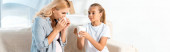 young blonde woman leaning chin on hand, horizontal banner